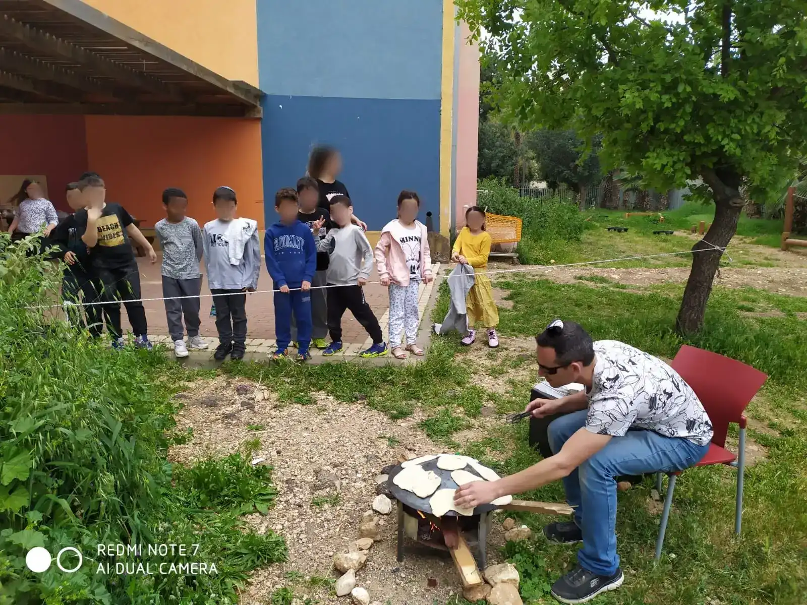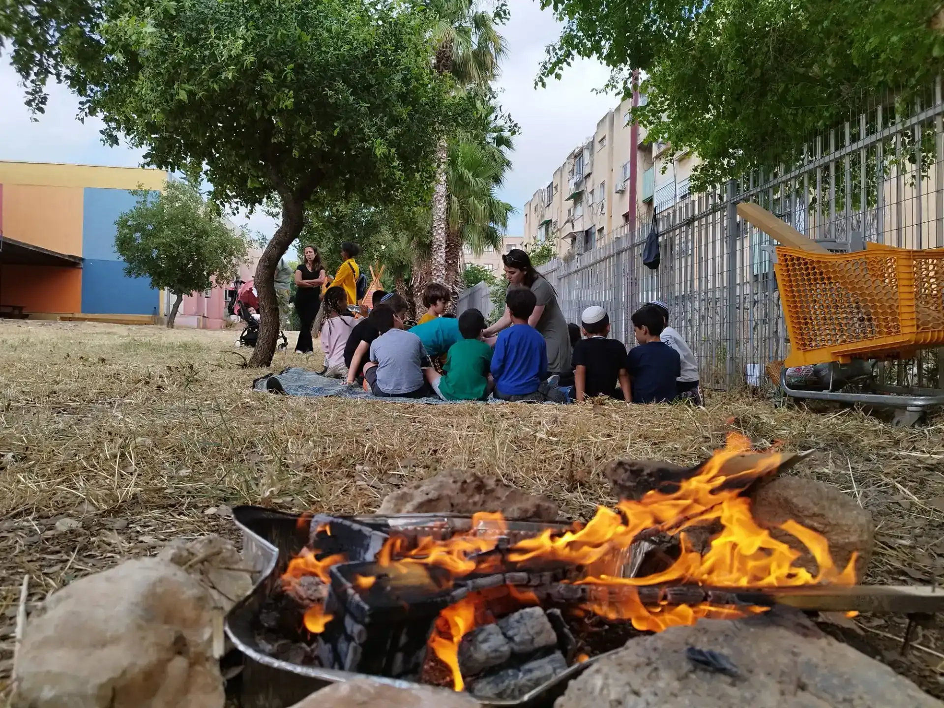רגע של למידה חווייתית. פיתות חמות על האש.