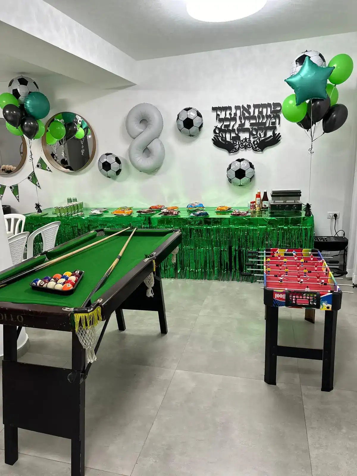 חדר פעילות חגיגי ומלא אנרגיות בסגנון כדורגל.