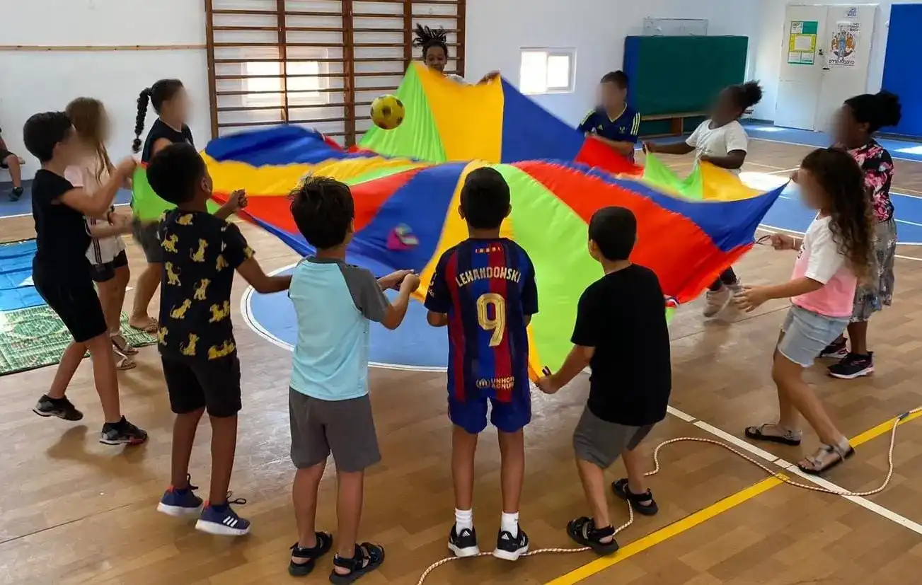 משחק מצנח מלא תנועה, שמחה ושיתוף פעולה.